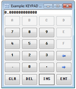 See KEYPAD Widget for a program that generates a KEYPAD widget and provides a display similar to that shown above.