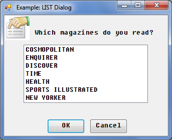 LIST Dialog for an example program that produces a display similiar to that shown above.